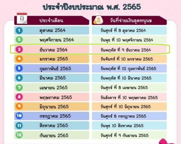 ปฏิทินการจ่ายเบี้ยยังชีพผู้สูงอายุ เบี้ยความพิการและเงินอุดหนุนเด็กแรกเกิด ประจำปีงบประมาณ 2565/3