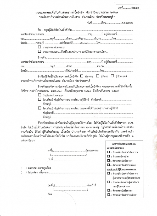 การยืนยันสิทธิการขอรับเงินเบี้ยยังชีพ